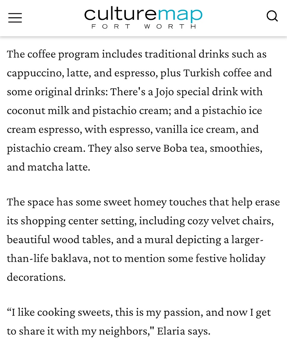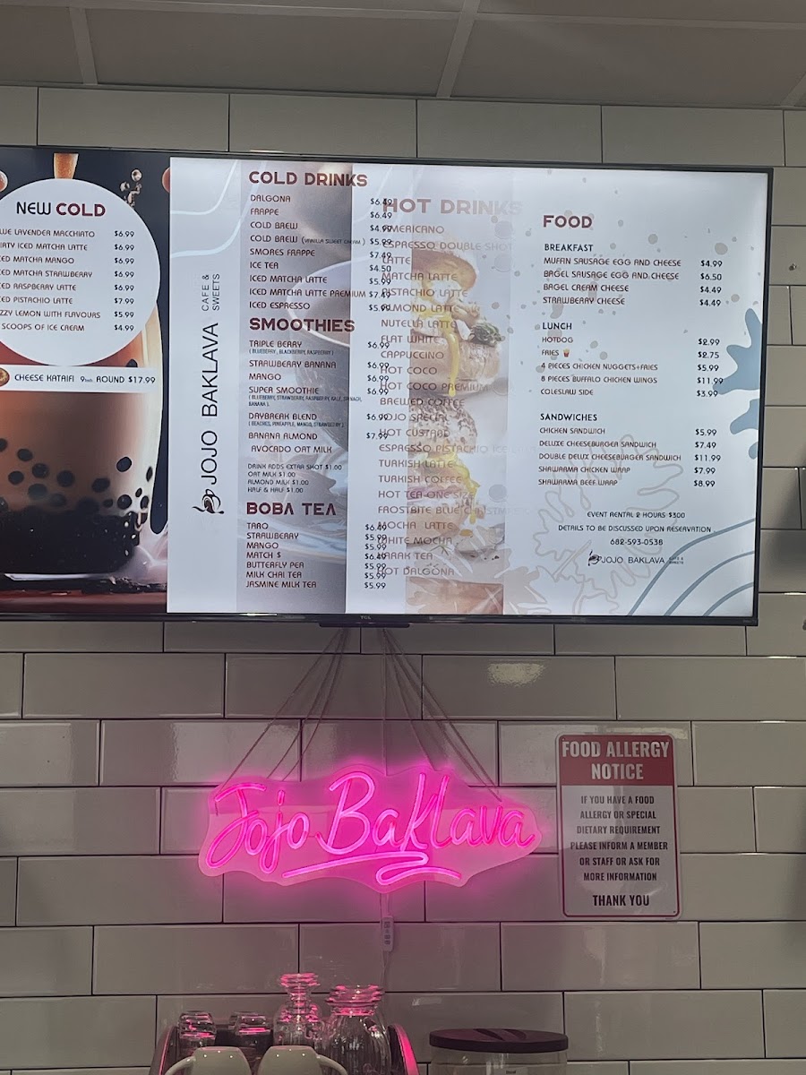JOJO Baklava Cafe & Sweets Menu